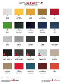 Auch wenn wir uns bemühen, Ihnen die Farb- und Materialauswahl möglichst realistisch darzustellen, senden wir Ihnen gerne gegen Kautionshinterlegung die Gesamtauswahl unserer Bezugsmaterialien als Farb- und Materialmuster zu. Diese können Sie über folgenden Link direkt online anfordern: Farb- und Materialmuster für Sitzbänke